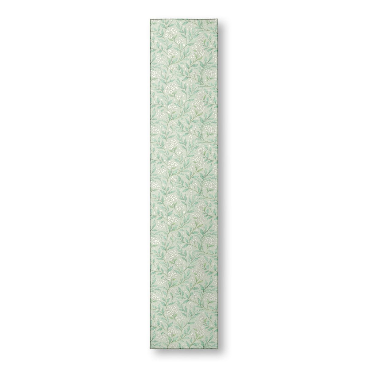 A serene, seamless botanical pattern of delicate white flowers and gracefully swirling green leaves. The elegant, illustrative design is set against a soft sage green background, creating a timeless and tranquil aesthetic with an Art Nouveau influence.