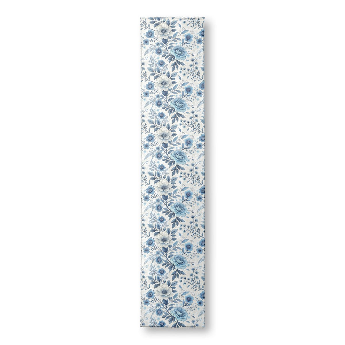 This is an elegant, seamless floral pattern featuring intricate blue and white flowers and leaves. Rendered in a delicate, watercolor or ink-wash style on a light, textured background, the design evokes the classic beauty of porcelain or fine textiles.