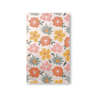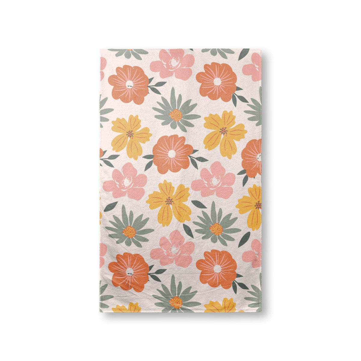 A seamless floral pattern featuring stylized, hand-drawn flowers. The design uses a warm, retro color palette of pink, terracotta, mustard yellow, and sage green on a light cream background, creating a charming and modern look.