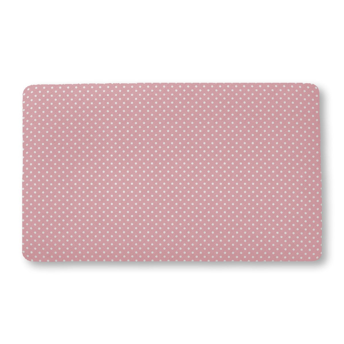 This is a classic, repeating pattern of small, evenly spaced white polka dots. The dots are arranged in a uniform grid on a solid, muted background of dusty rose or mauve, creating a simple and gentle geometric design.
