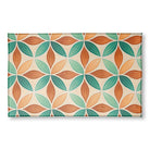 A retro geometric pattern featuring stylized flowers with alternating teal and terracotta-orange petals. The seamless design is set on a cream, textured background, creating the look of vintage ceramic tiles with a mid-century modern aesthetic.