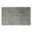 A seamless floral pattern on a dark green background features stylized wildflowers and leaves. The charming, whimsical design uses an earthy color palette of muted orange, white, sage green, pink, and mustard yellow, evoking a folk-art or vintage feel suitable for textiles.