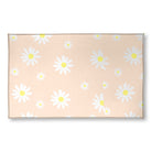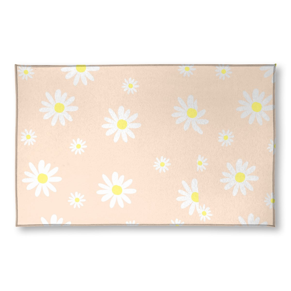 This is a simple, seamless pattern of stylized daisies. White flowers with yellow centers, in various sizes, are scattered across a soft, pale peach background for a sweet and gentle effect.