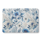 This is a delicate and intricate floral pattern featuring blue and white flowers, leaves, and berries. Rendered in a watercolor and ink-line style against a white background, the design creates a timeless and elegant botanical illustration.