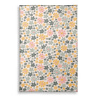 A retro-inspired, seamless pattern of stylized flowers. The ditsy floral print uses a muted color palette of pink, mustard yellow, sage, and dark green against a cream background, creating a groovy, 1970s aesthetic.