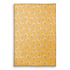 A repeating pattern of stylized white flowers with dark stems scattered across a solid mustard-yellow background. The simple, whimsical floral design has a modern, graphic feel, creating a cheerful and charming aesthetic.