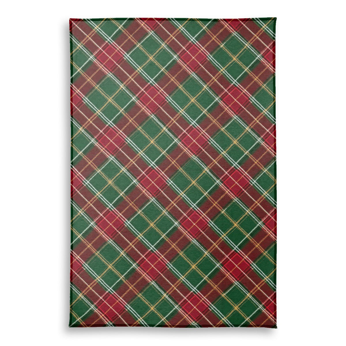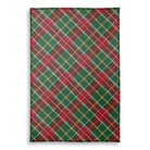 This image features a classic Christmas plaid pattern. The diagonal tartan design consists of intersecting stripes in festive colors of red, green, white, and gold. The pattern has a slightly woven texture, evoking a traditional and cozy holiday feel.