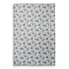 The image displays a seamless pattern of stylized blue roses on a beige background. The roses are densely clustered on thorny stems, with some buds and leaves interspersed. The background has a subtle linen-like texture. The overall style is reminiscent of classic floral toile patterns, suggesting a sophisticated and perhaps slightly traditional aesthetic.