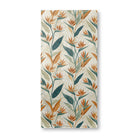 This is a stylized botanical pattern featuring Bird of Paradise flowers and tropical leaves. The design uses a warm, earthy color palette of burnt orange, terracotta, and deep greens, set against a textured, light-beige background with a subtle crackled effect for a vintage feel.