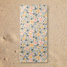 A retro-inspired, seamless pattern of stylized flowers. The ditsy floral print uses a muted color palette of pink, mustard yellow, sage, and dark green against a cream background, creating a groovy, 1970s aesthetic.