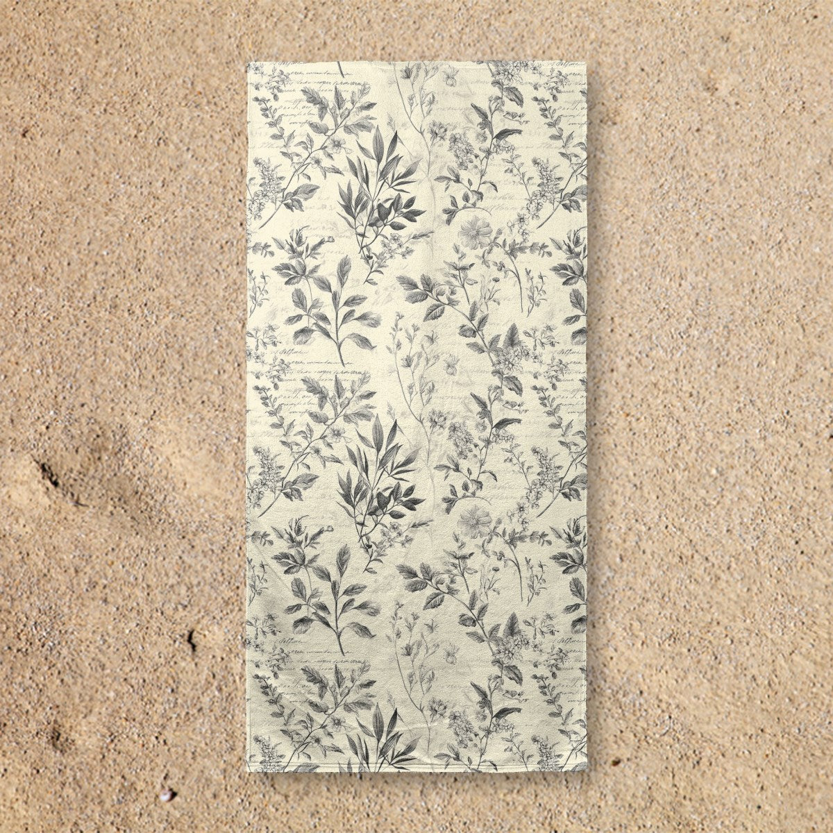 Vintage Botanical Script Toile 6 - Beach Towel 30x60