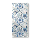 This is a delicate and intricate floral pattern featuring blue and white flowers, leaves, and berries. Rendered in a watercolor and ink-line style against a white background, the design creates a timeless and elegant botanical illustration.