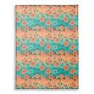 A vibrant, retro-style pattern of orange and teal hibiscus flowers with dark green leaves. The background is a stylized sunset gradient, shifting from warm orange to cool turquoise, with subtle clouds creating a serene, tropical atmosphere.