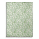 A vintage-style seamless pattern featuring delicate white flowers on gracefully swirling green vines. The intricate, elegant design is set against a soft, muted sage green background with subtle decorative swirls, creating a classic and serene composition.