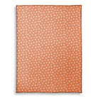 A seamless floral pattern featuring small, simple white flowers with yellow centers. The stylized blossoms are scattered across a warm, terracotta-colored background, creating a charming and minimalist design with a hand-drawn feel.