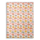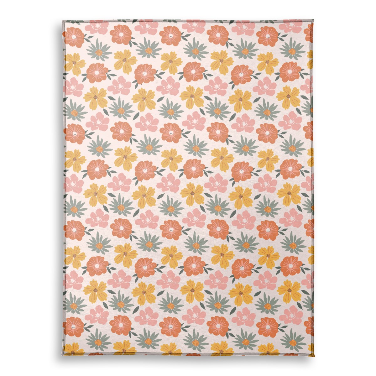 A seamless floral pattern featuring stylized, hand-drawn flowers. The design uses a warm, retro color palette of pink, terracotta, mustard yellow, and sage green on a light cream background, creating a charming and modern look.
