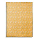 A repeating pattern of stylized white flowers with dark stems scattered across a solid mustard-yellow background. The simple, whimsical floral design has a modern, graphic feel, creating a cheerful and charming aesthetic.
