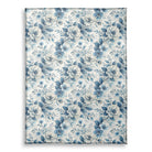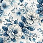 This is an elegant seamless pattern of blue and white flowers. Rendered in a delicate, watercolor-like style, the blossoms and dark blue leaves are set against a light, textured background, creating a classic and serene botanical design.