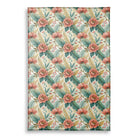A watercolor-style botanical pattern featuring large, dusty rose flowers and lush tropical leaves in shades of teal, green, and gold. The elegant design is set on a cream background accented with golden speckles, creating a warm and artistic feel.