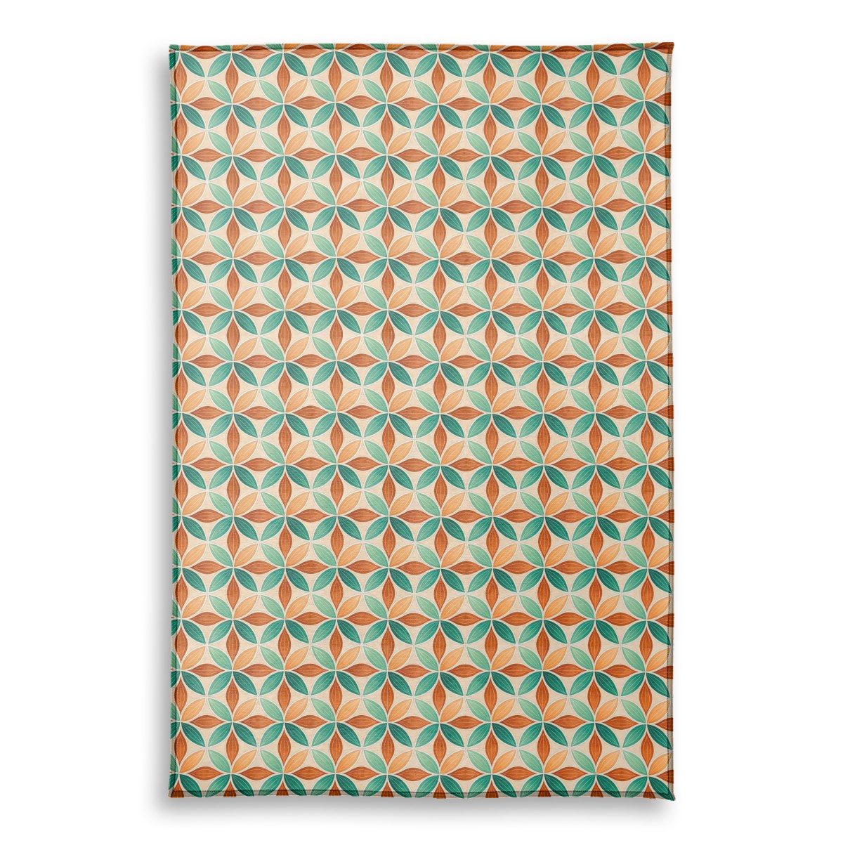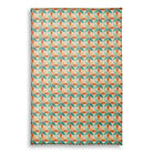 A retro geometric pattern featuring stylized flowers with alternating teal and terracotta-orange petals. The seamless design is set on a cream, textured background, creating the look of vintage ceramic tiles with a mid-century modern aesthetic.