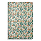 A stylized, seamless pattern of tropical flora. Vibrant orange Bird of Paradise flowers and large, teal-green leaves are illustrated against a light, textured background with muted beige foliage, creating a lush, vintage-inspired design.