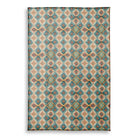 This image displays a richly textured, repeating geometric pattern with a Southwestern or tribal aesthetic. Jagged-edged diamonds in a palette of teal, red, and earthy tones create a rustic, weathered design reminiscent of a woven rug or textile.