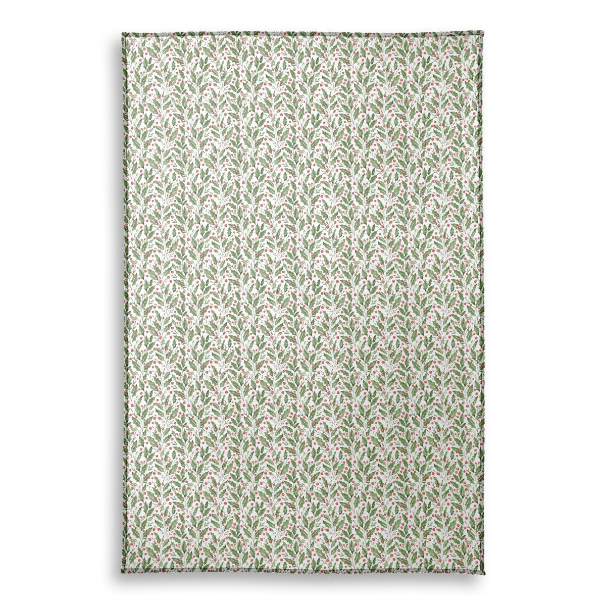 This is a seamless watercolor pattern of festive holly. Spiky green leaves and bright red berries are arranged in vertical sprigs against a white background, creating a classic and cheerful Christmas design.