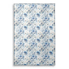 This is a delicate and intricate floral pattern featuring blue and white flowers, leaves, and berries. Rendered in a watercolor and ink-line style against a white background, the design creates a timeless and elegant botanical illustration.