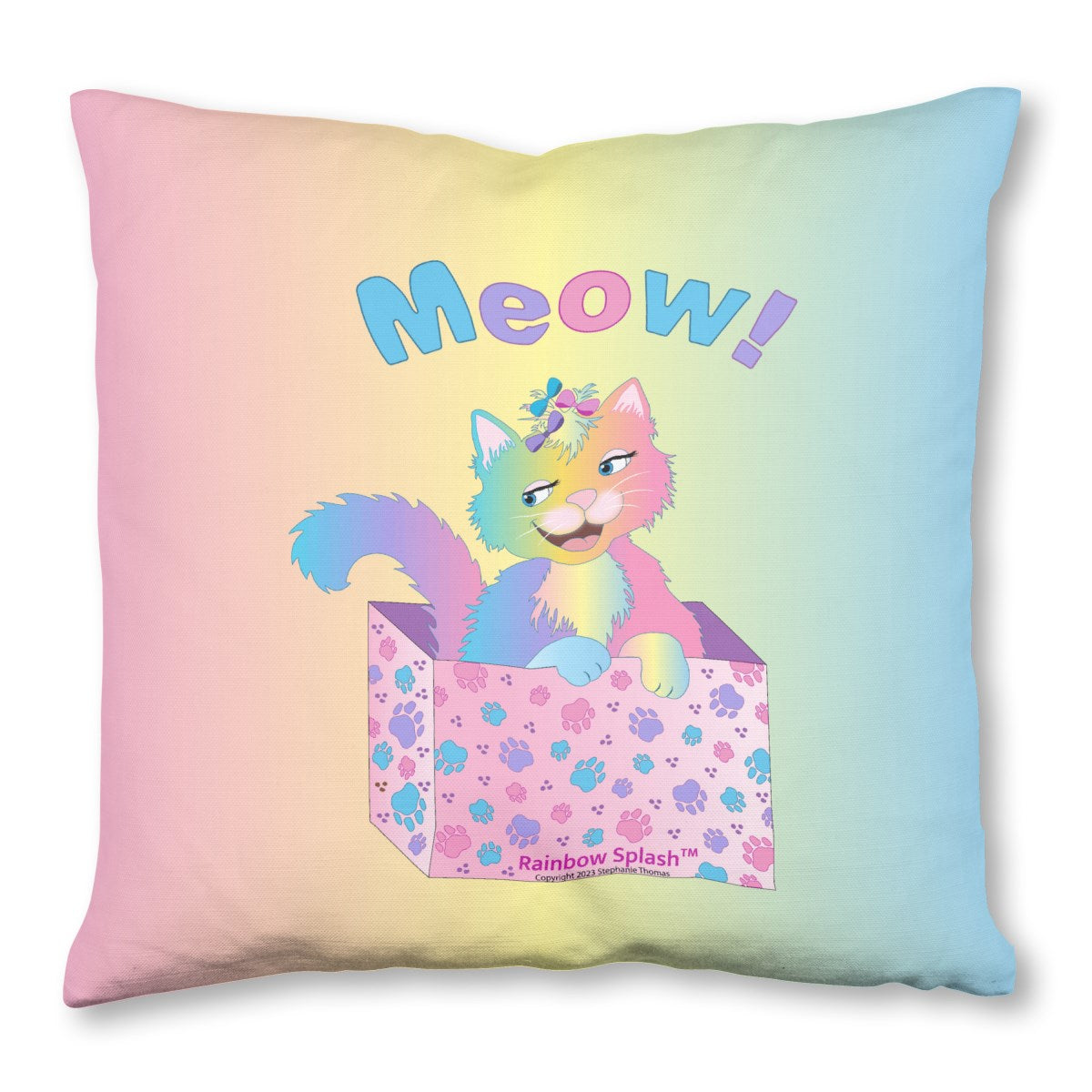 Rainbow Splash MEOW - Throw Pillow 16x16 AZNI