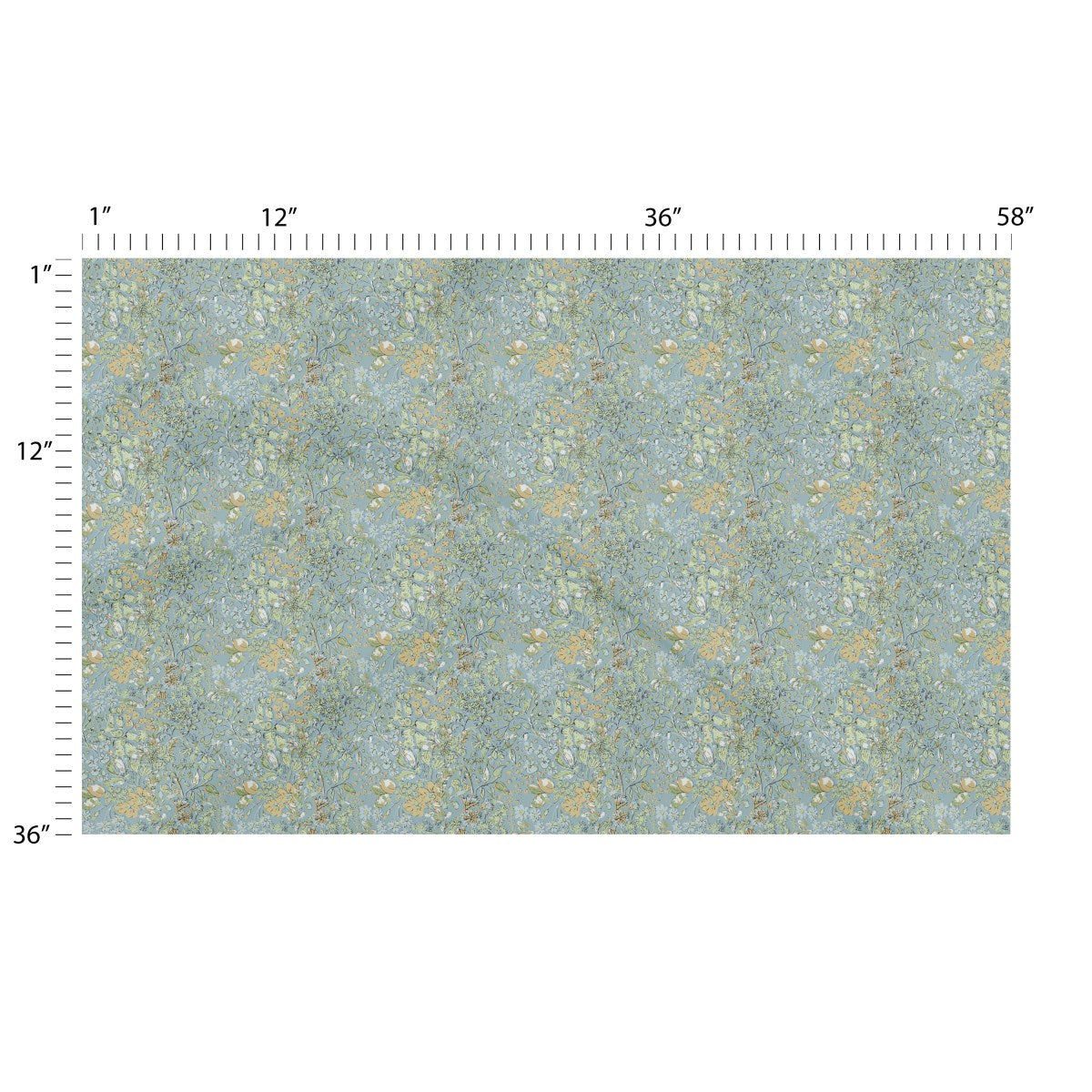 Vines and Fruits Teal - Natural Fiber Fabric By The Yard