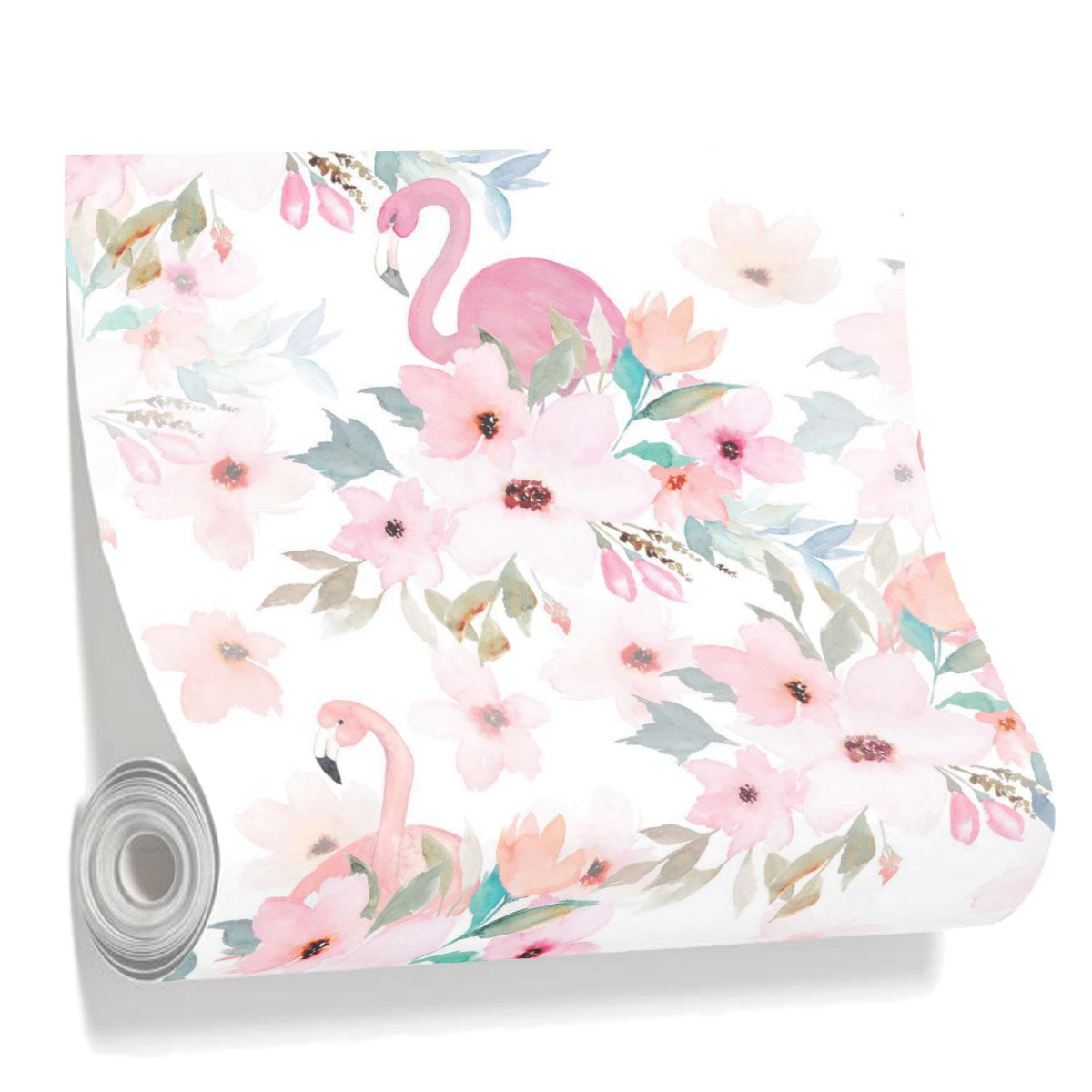 Wallpaper Flamingo Floral - Wall Covering - Peel and Stick Wallmark Canvas