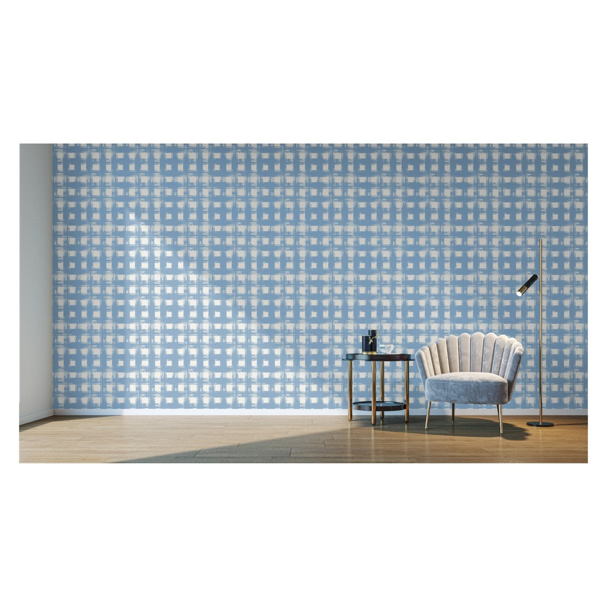 brush check blue CAT - Wall Covering - Pre-Pasted PVC Free