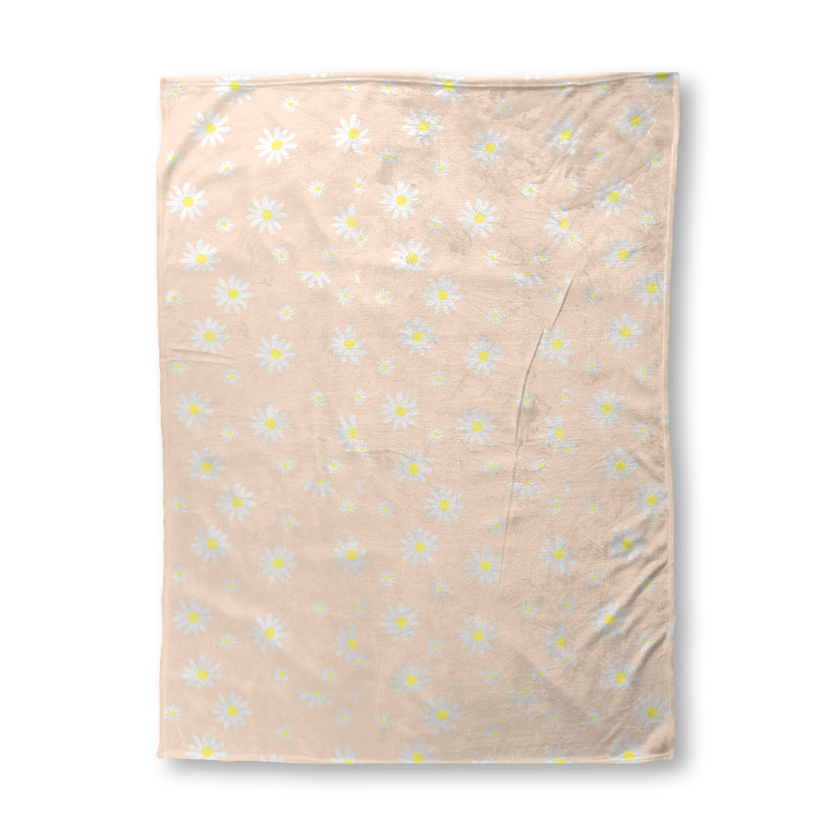 This is a simple, seamless pattern of stylized daisies. White flowers with yellow centers, in various sizes, are scattered across a soft, pale peach background for a sweet and gentle effect.