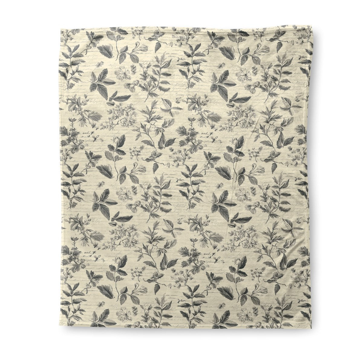 Vintage Botanical Script Toile 1 - Fleece Blanket 50x60