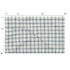 The image shows a seamless pattern of a plaid design. The base is off-white, with intersecting lines of teal, light grey and beige.