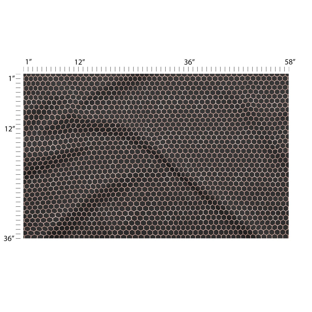 A seamless honeycomb pattern with thin, rose gold metallic lines creates a repeating grid of hexagons. The elegant, geometric design is set against a solid black background, producing a modern and striking contrast.