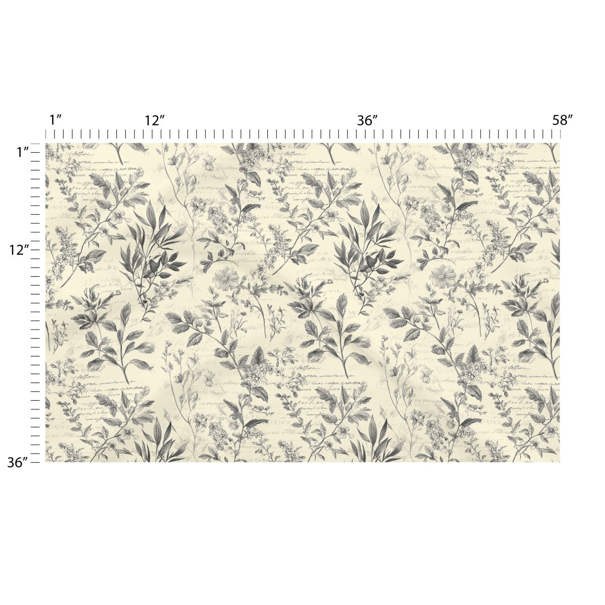 Vintage Botanical Script Toile 6 - Man Made Fabric By The Yard