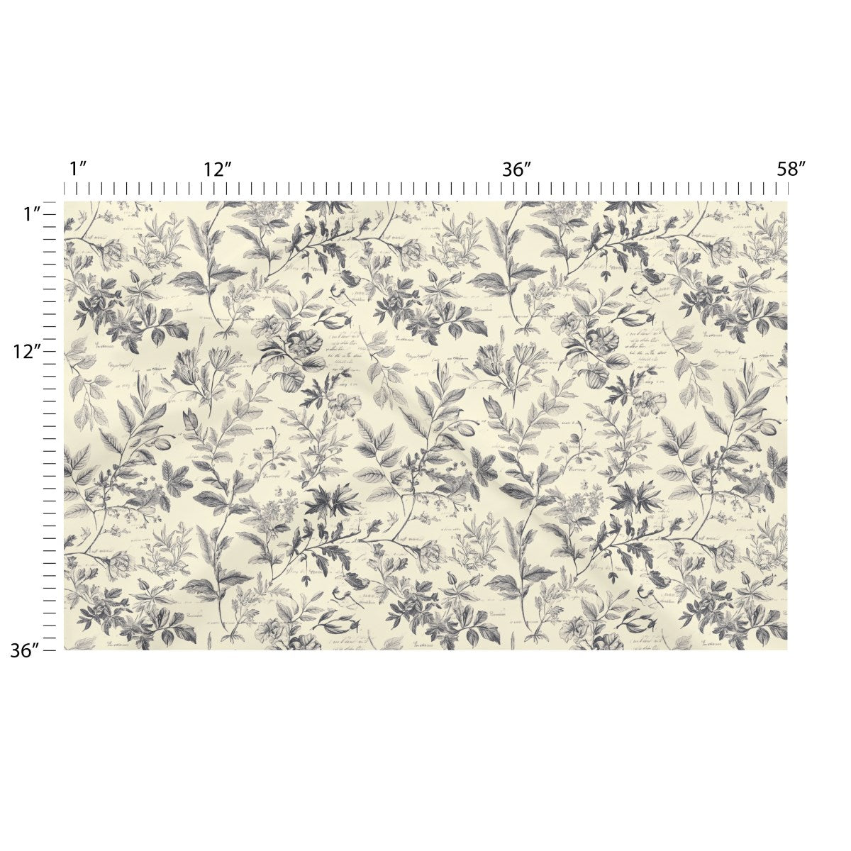 Vintage Botanical Script Toile 9 - Man Made Fabric By The Yard