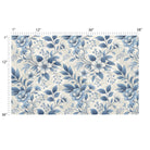 This is an elegant, seamless floral pattern in a classic blue and white palette. Intricately drawn flowers and leaves intertwine over a light, textured background, creating a timeless design reminiscent of vintage botanical illustrations or fine porcelain.