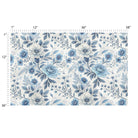 This is an elegant, seamless floral pattern featuring intricate blue and white flowers and leaves. Rendered in a delicate, watercolor or ink-wash style on a light, textured background, the design evokes the classic beauty of porcelain or fine textiles.