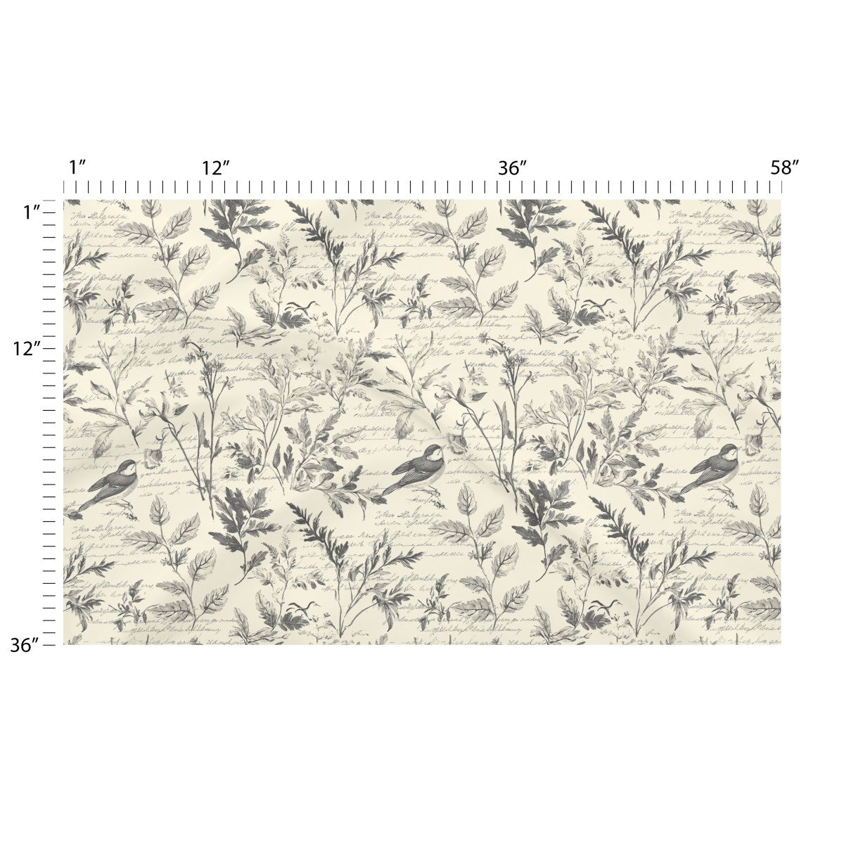 Vintage Botanical Script Toile 1 - Man Made Fabric By The Yard