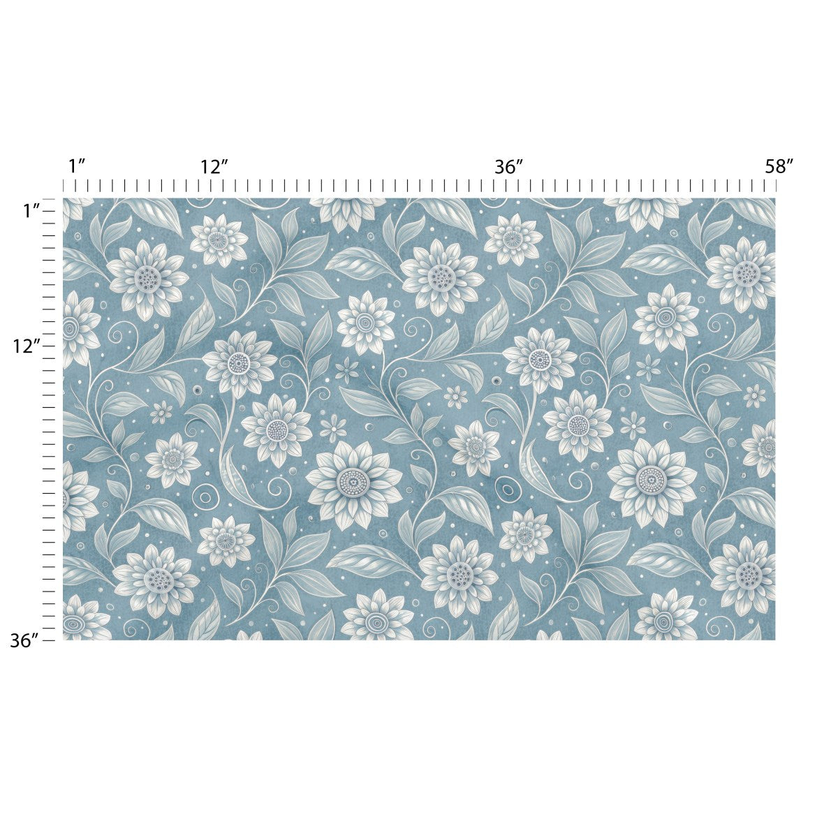 Blue and Green Vintage 5 - Natural Fiber Fabric by the Yard