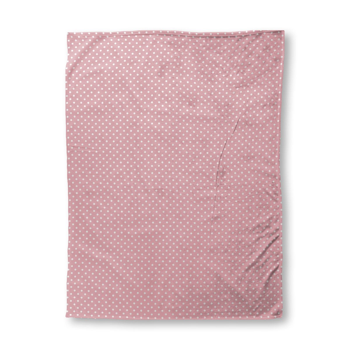 This is a classic, repeating pattern of small, evenly spaced white polka dots. The dots are arranged in a uniform grid on a solid, muted background of dusty rose or mauve, creating a simple and gentle geometric design.