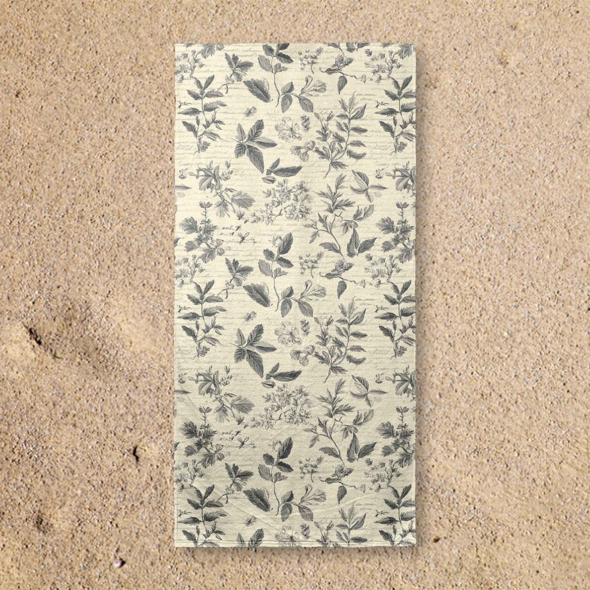 Vintage Botanical Script Toile 1 - Beach Towel 30x60