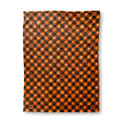 A whimsical, seamless Halloween pattern featuring a diagonal plaid in orange, black, and brown. The design is scattered with hand-drawn, cartoonish skulls, jack-o'-lanterns, and other small autumnal motifs, creating a festive and spooky-cute feel.