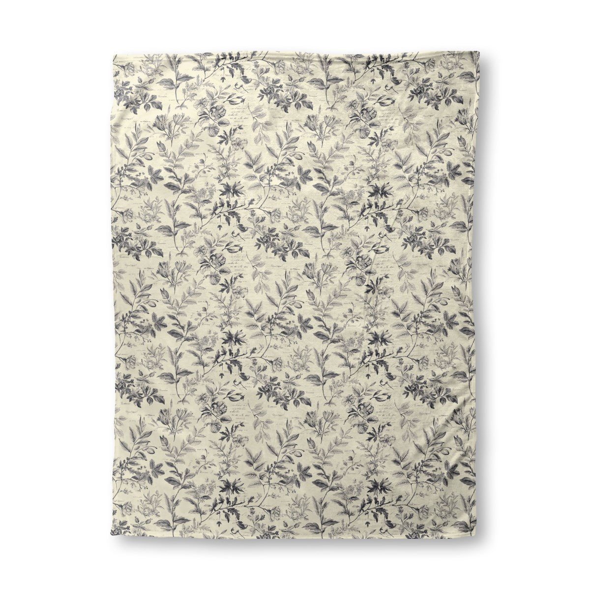 Vintage Botanical Script Toile 3 - Fleece Blanket 60x80