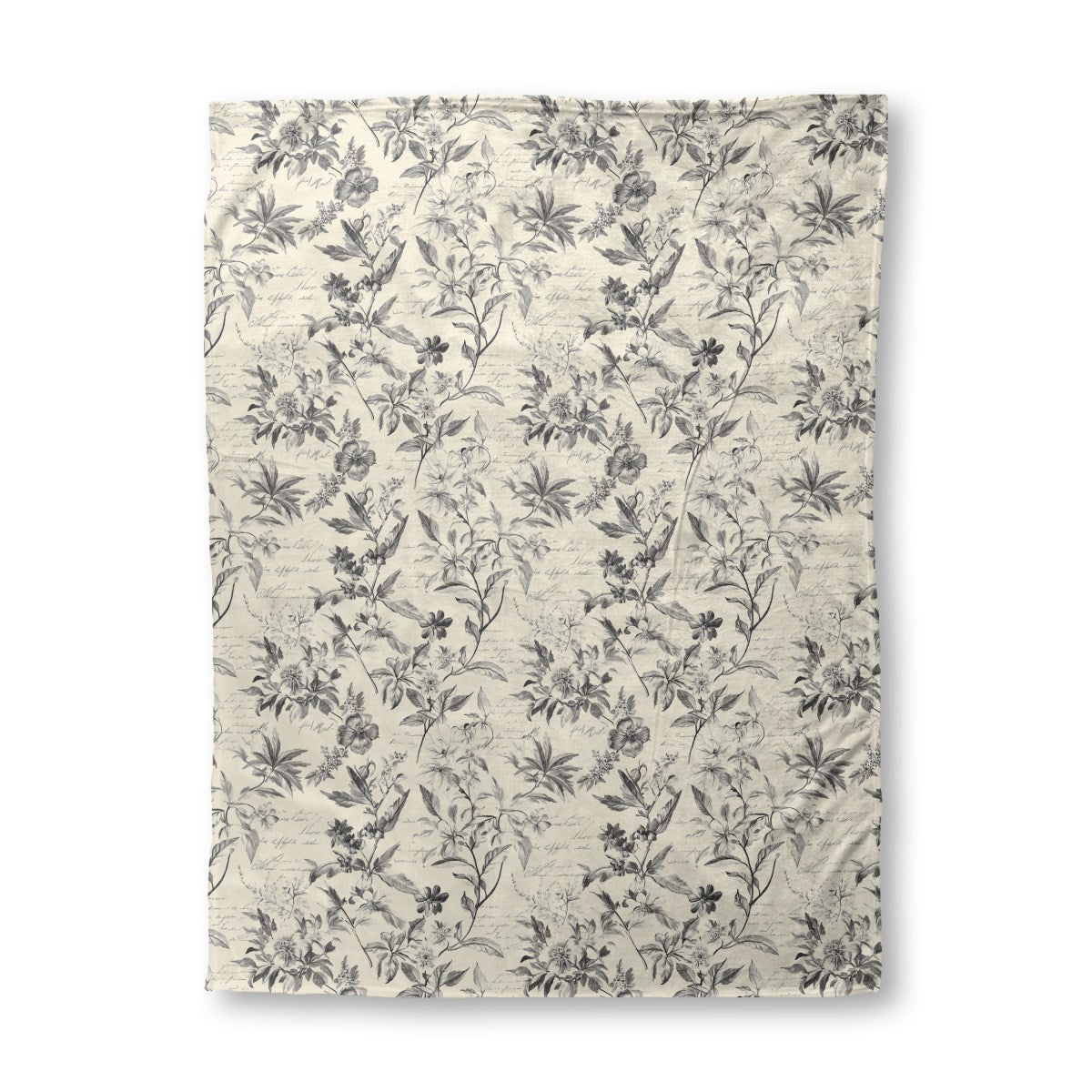 Vintage Botanical Script Toile 13 - Fleece Blanket 60x80