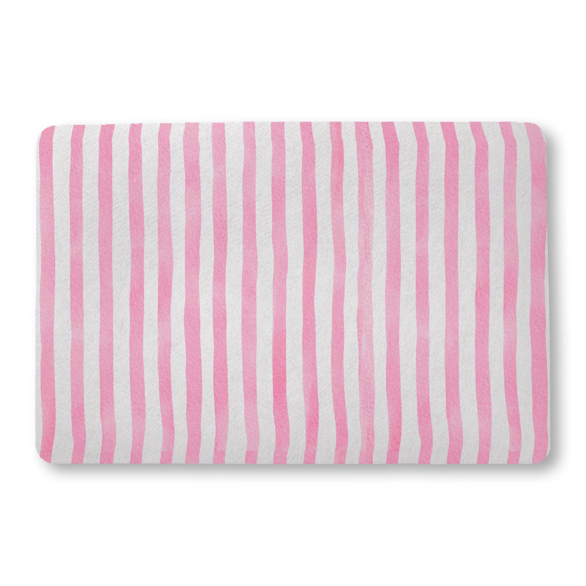 A pattern of vertical, hand-painted stripes in pink watercolor on a white background. The lines are slightly wavy and irregular, giving the design a soft, textured, and organic feel.