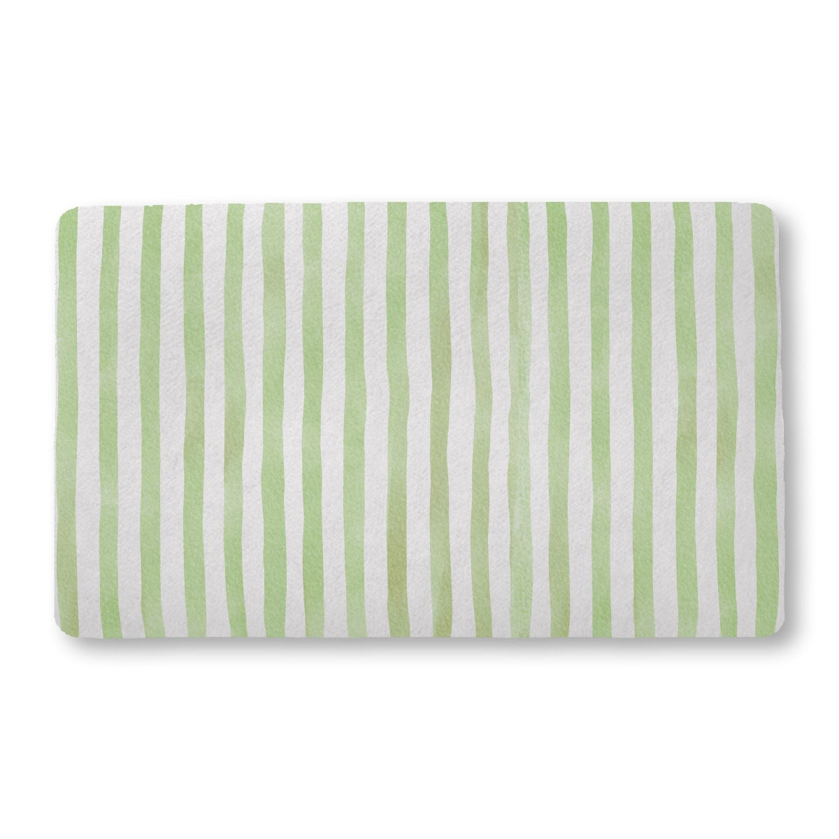 A gentle, artistic pattern of hand-painted vertical stripes. The soft, sage green lines have a distinct watercolor texture with slightly wavy edges, set against a simple white background for a clean, organic feel.