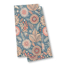 A dense, folk art-inspired pattern features stylized flowers, leaves, and ferns against a dark teal background. The illustration uses a warm, autumnal palette of rust, orange, and cream, creating a rich, vintage textile feel.